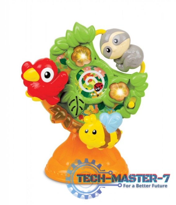 Na drzewku znajdują się zwierzaki, które wchodzą w interakcję z dzieckiem. Dotknij zwierzaka i popchnij drzewko, zabawka zrobi obrót i zakończy ruch spokojnym kołysaniem. Dodatkowo w drzewku jest grzechotka i i wesołe migające światełka.