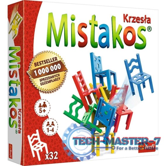 Czteroosobowa gra zręcznościowa Mistakos z krzesełkami w roli głównej! Czy jesteś w stanie ułożyć wieżę ze wszystkich swoich krzeseł i nie otrzymać punktów karnych? Dobra zabawa gwarantowana teraz także w większym gronie!