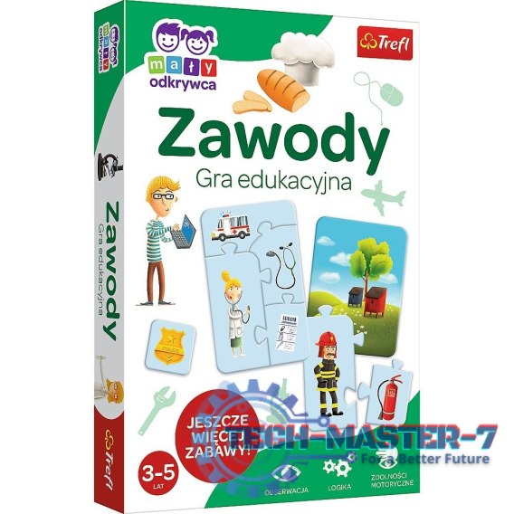 Zawody to układanka dla najmłodszych, dzięki której dzieci zapoznają się z pracą ludzi na różnych stanowiskach oraz ich narzędziami pracy. Bawiąc się, dzieci wzbogacają słownictwo związane z zawodami, ćwiczą umiejętności związane z wypowiadaniem się na określony temat, rozbudzają ciekawość poznawczą.