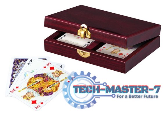 Ekskluzywny zestaw kart Piatnika w szkatułce z ciemnego drewna z z delikatnie widocznymi słojami, wyściełane bordowym, miękkim materiałem. W komplecie są dwie talie najlepszych kart Piatnika, historyczny już model Luxury. W każdej talii 55 kart. Idealne na prezent, podstawowy zestaw wytrawnego gracza.