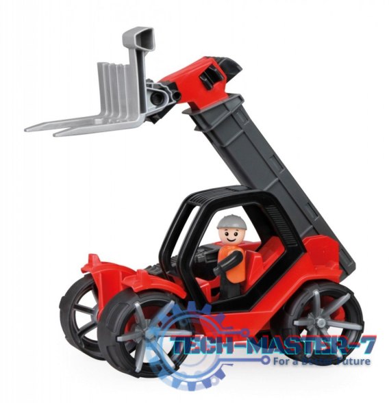- 2-stopniowe ramię wysuwane do 34 cm, widły z blokadą z uchwytem, zaczep do przyczepy i figurka LENA