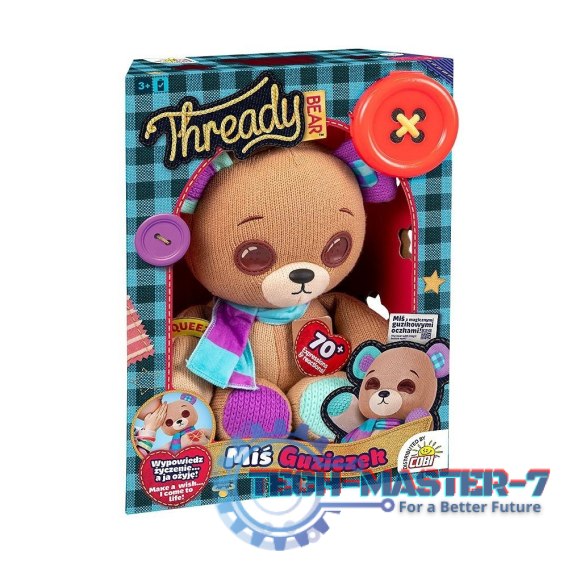 Poznaj Thready Bear - misia z magicznymi oczami z guzików. Może być przytulanką, ale jeśli zechcesz i wypowiesz życzenie, on magicznie ożyje! Miś Thready jest bardzo interaktywny, będzie reagował na Twój głos i dotyk, a jego guziczkowe oczy pokażą w jakim jest nastroju, czy jest szczęśliwy, smutny czy może zły. Odkryj jego ponad 70 różnych rodzajów ekspresji i reakcji.