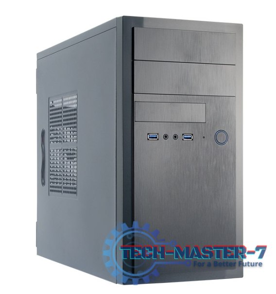 Obudowa Mini Tower kompatybilna z Micro ATX. Urządzenie posiada dwa złącza USB 3.0 oraz słuchawkowe i mikrofonowe.