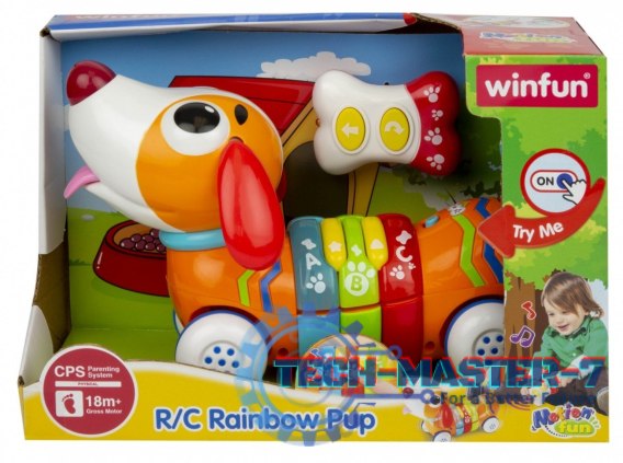 - Jest zdalnie sterowany, pilot w kształcie kości (jeździ do przodu i do tyłu).