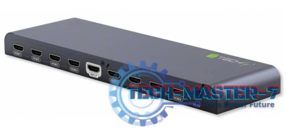 Splitter HDMI. Umożliwia jednoczesne wyświetlanie obrazu z jednego źródła sygnału HDMI na ośmiu wyświetlaczach HDMI.