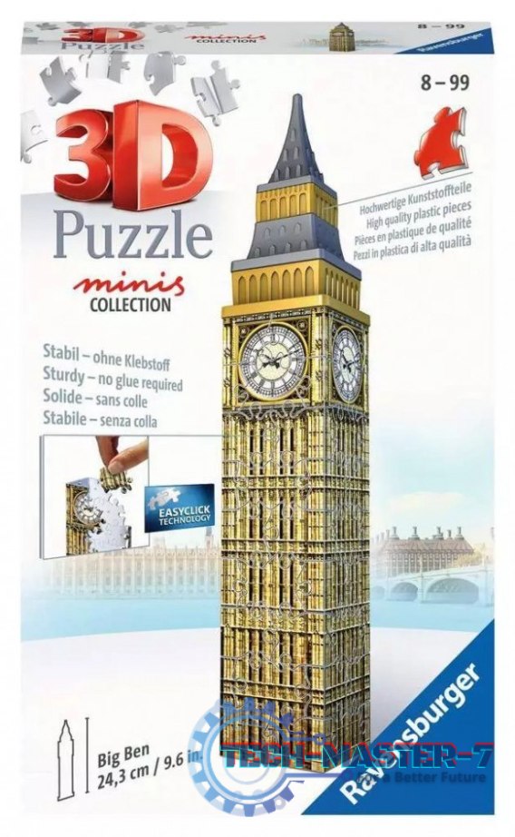 Miniaturowa układanka 3D Big Ben. Doskonała dla początkujących, jak i zaawansowanych fanów puzzli. Zachwyca 54 stabilnymi elementami. Dołączona ilustrowana instrukcja.