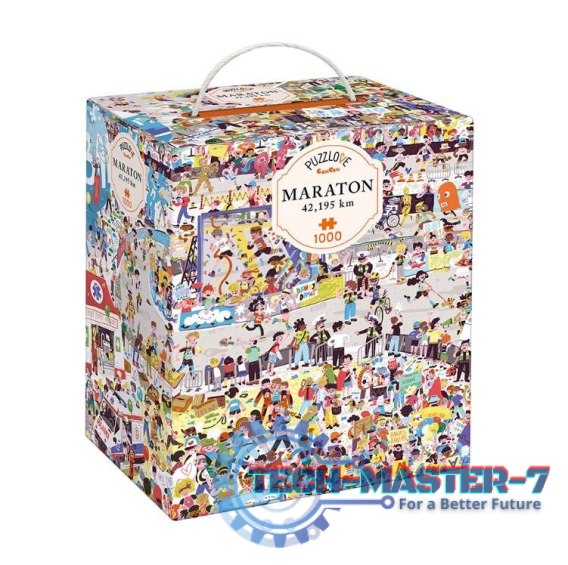 Łatwo już było! To prawdopodobnie nasze najtrudniejsze puzzle: 1000 elementów przedstawia tłum biegaczy, kibiców i to, co dzieje się na trasie biegu maratońskiego. Po ułożeniu (kibicujemy Wam!) np0 powstanie obraz o wymiarach 48 x 68 cm.