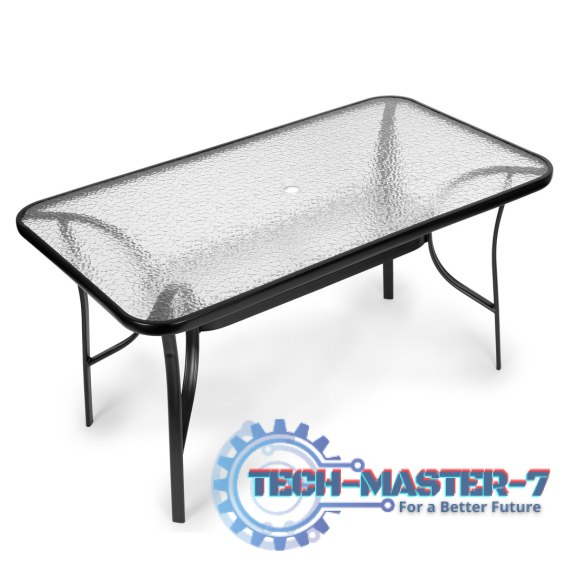 Blat został wykonany z hartowanego szkła "Water Wave". Jest on odporny na warunki atmosferyczne i uszkodzenia mechaniczne. Dzięki temu, nie musisz się martwić o jego stan przy przypadkowym uderzeniu filiżanką lub talerzem. Blat został wykończony czarną ramką, któradodatkowo zabezpiecza jego krawędzie i dodaje wyjątkowego charakteru.