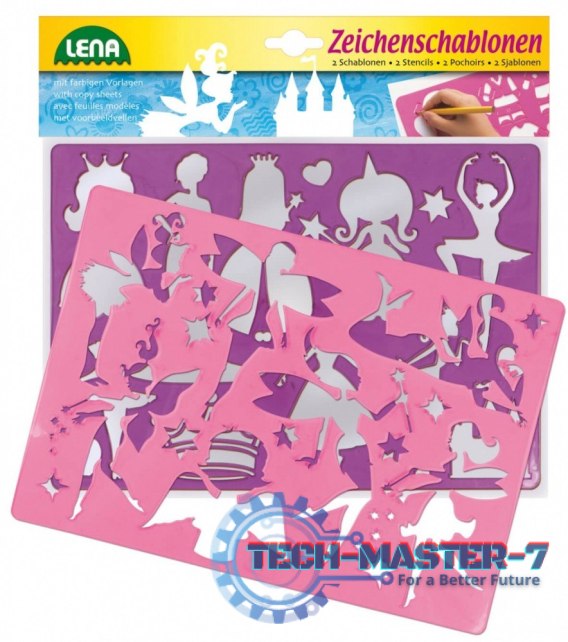 Szablony rysunkowe z motywem księżniczek i baletnic. Opakowanie zawiera 2 szablony o wymiarach 27 x 23 cm.
