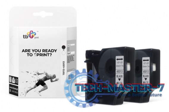 Taśma TBTD-45013 do DYMO Czarny na Białym 12mm x 7m 2szt.