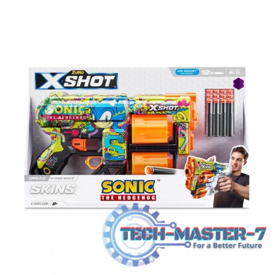 Poczuj się jak bohater gry komputerowej z wyrzutnią w oryginalnym unikatowym wariancie kolorystycznym inspirowanym Jeżem Soniciem! Wszyscy fani serii Sonic the Hedgehog mogą połączyć swoje dwie pasje - aktywną zabawę z wyrzutniami X-Shot oraz gry video, wybierając fantastyczny blaster Skins Dread. Dzięki pojemności 12 strzałek, będziesz gotowy na każdą zaciętą bitwę!