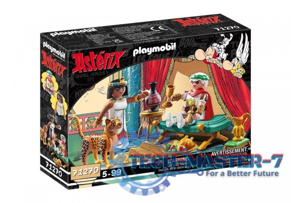 Zainspirowani filmem Kleopatra z 1963 roku René Goscinny i Albert Uderzo stworzyli jedną z najsłynniejszych postaci w uniwersum Asterixa: królową Kleopatrę. Równocześnie choleryczka, autorytarna, lojalna, wielkoduszna i niewiarygodnie piękna Kleopatra jest kobietą imponującą, która budzi podziw nie tylko u Miraculix. W dialogu z Cezarem iskry lecą między tymi dwoma olśniewającymi postaciami opowieści i jedna lub druga waza pęka. W tym scenariuszu nie powinno zabraknąć również słynnego lamparta. Dzięki zestawowi do zabawy PLAYMOBIL Cezar i Kleopatra miłośnicy nieposkromionych Galów mogą teraz odtwarzać w domu najsłynniejsze sceny z komiksów lub wymyślać własne historie.