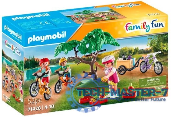 Wyrusz już teraz na wspaniałą wycieczkę rowerową z całą rodziną. Szczegółowo zaprojektowany zestaw do zabawy PLAYMOBIL zawiera dodatki potrzebne do długich wycieczek rowerowych odbywających się w pokoju dziecięcym: trzy rowery, kaski, plecak, prowiant i inne wspaniałe akcesoria.Dla bezpieczeństwa każda z figurek zakłada kask. Liczne elementy wyposażenia można przechowywać w przyczepce rowerowej i zabezpieczyć silikonowym paskiem. Zestawy z serii Kemping PLAYMOBIL zapraszają dzieci w wieku od 4 lat do przeżycia wymarzonych wakacji w domu. Wspaniała zabawa samemu lub z przyjaciółmi. Możliwość połączenia z innymi zestawami z serii PLAYMOBIL Family Fun.
