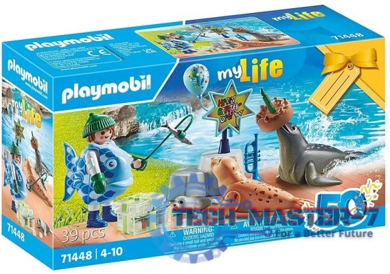 PLAYMOBIL - Zestaw upominkowy: Karmienie zwierząt. W zabawnym rybim kostiumie w porze karmienia zwierząt.