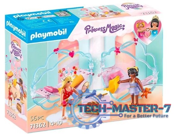 Pora na zabawę z tęczowymi księżniczkami na niebiańskim piżama party PLAYMOBIL. Zanim dwie tęczowe księżniczki ułożą się do snu w kołyszących się łóżkach, ozdabiają je błyszczącymi klejnotami. Następnie przenoszą się do krainy marzeń i snów z czarującymi postaciami, magicznymi stworzeniami i bajkowymi budynkami. Niebiański świat PLAYMOBIL zabiera dzieci do magicznej, pełnej przygód krainy w chmurach.